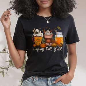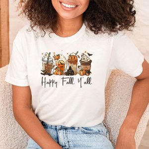 Happy Fall Y’all T-shirt Latte Coffee Leopard Pumpkin Autumn T-Shirt