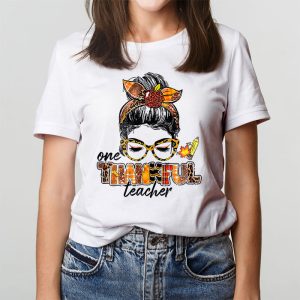 One Thankful Teacher Funny Messy Bun Fall Thanksgiving Women T-Shirt