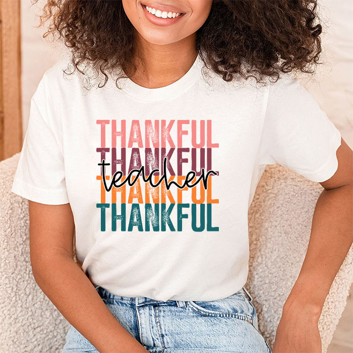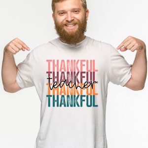 Thankful Teacher Retro Groovy Thanksgiving Fall Women Men T-Shirt